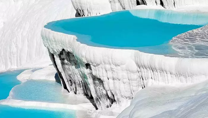 قصر پنبهای یا پاموک کاله، دستاورد زلزلهای است که در ۴۰۰ هزار سال پیش اتفاق افتاد و جابجایی زمین و بیرون آمدن چشمههای آب گرم را به دنبال داشت. خارج شدن آبهای زیرزمینی با مواد معدنی بسیار زیاد و تبخیر شدن آنها در اثر گرمای خورشید، باعث باقیماندن این مواد معدنی بر سطح زمین و شکلگیری تراسهای طبقهطبقه آهکی و تراورتنی شد. این منطقه دارای آبگیرهای طبیعی و حوضچههای زیبای پلکانی است که به دلیل بالا بودن میزان آهک در آب آن و تهنشین شدن مواد معدنی و رسوبات آنها در تپههای پاموک کاله، منظره بسیار زیبا و شگفتانگیزی را ایجاد کرده است.