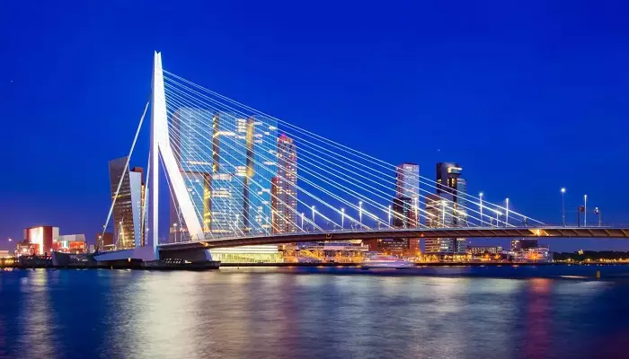 روتردام یکی از جاهای دیدنی اروپا هلند است که لقب بزرگترین بندر اروپا و دومین بندر بزرگ جهان را یدک میکشد. این شهر را به دلیل موقعیت استراتژیک و قرار داشتن در مرکز حمل و نقل هوایی، زمینی و ریلی اروپا، دروازه اروپا مینامند. روتردام شهری است با تنوع فرهنگی بالا، معماری مدرن، سواحل و چشماندازهای زیبا و همچنین شهری مهم از نظر علمی. روتردام از لحاظ معماری در اروپا شهرت دارد و آن را پایتخت شهرسازی و معماری هلند میدانند و تلفیقی از هنر آوانگارد، شهرسازی مدرن و شهرسازی سنتی در این شهر به چشم میخورد.