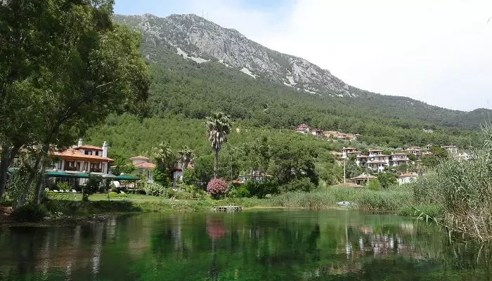 در نزدیکی شهر توریستی آکیاکا (Akyaka)، رودخانه آزماک (Azmak River) با آبی به شفافیت کریستال، مانند یک آکواریوم طبیعی در جریان است. عمق این رودخانه در برخی نقاط به 8 متر میرسد، اما به دلیل زلالی بیش از حد آب، میتوانید به راحتی گیاهان کف رودخانه و ماهیهایی که در آن شنا میکنند را ببینید.