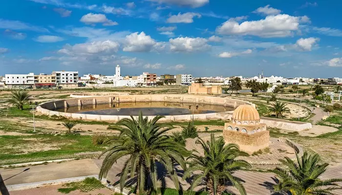 قیروان (Kairouan) که در سال 670 میلادی تاسیس شد، اولین پایتخت اسلامی در شمال آفریقا بود و به عنوان چهارمین شهر مقدس جهان اسلام (پس از مکه، مدینه و اورشلیم) شناخته میشود. کل بافت تاریخی این شهر در فهرست میراث جهانی یونسکو قرار دارد.
