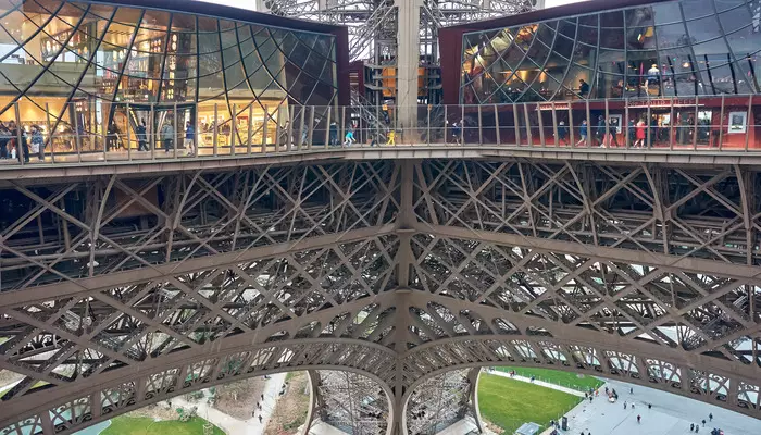 ایفل یک سازه فلزی معمولی نیست و معماری خارقالعادهای دارد و داخل آن نیز بسیار تماشایی است. در سفر به پاریس فقط به تماشای بخش بیرونی این برج اکتفا نکنید و از داخل نیز بازدید کنید. تماشای پاریس بر فراز برج ایفل در هیچ نقطهای از دنیا نصیبتان نخواهد شد.