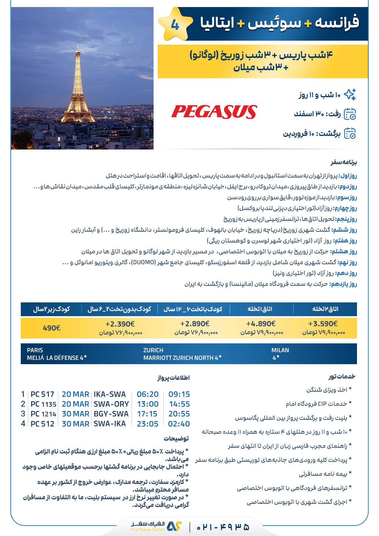 تور فرانسه و سوئیس و ایتالیا از تهران ارزان قیمت ویژه نوروز + ارائه تورهای اروپا ⭐️ + ترانسفر فرودگاهی، بیمه مسافرتی ✅ با آژانس الفبای سفر